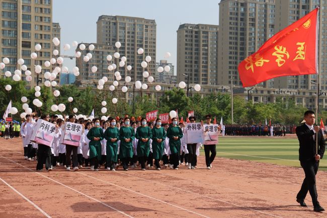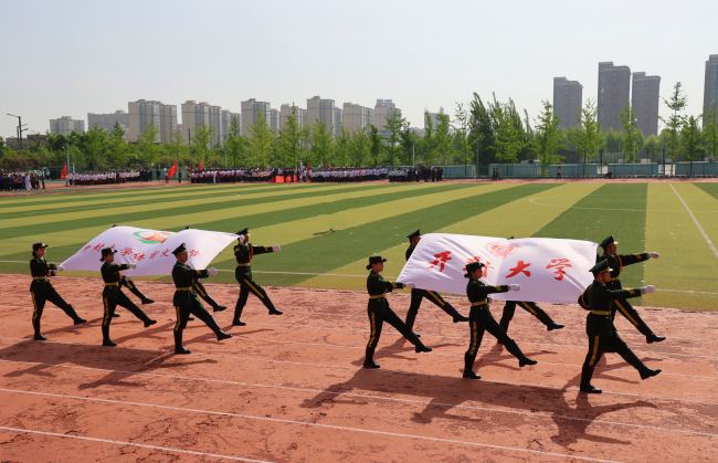 王德如在致開幕詞中代表學校對運動會的召開表示熱烈祝賀,向籌備本次活動的老師、同學和全體裁判員、運動員致以誠摯問候。王德如指出,體育是學校教育的重要組成部分,是實現立德樹人根本任務的基礎性工程,對于培養學生愛國主義、集體主義、社會主義精神和奮發向上、頑強拼搏的意志品質,實現“以體育智、以體育心”具有重要意義。學校一直以來對體育工作高度重視,持續積極開展各項體育活動,不斷創新體育課程設置,組織豐富多彩的體育賽事,在取得出彩成績的同時激發起廣大師生對體育運動的熱情。王德如表示,學校將會加快實施東體育場建設工程和西體育場提升改造工程,盡快建成東西并進、樣式新穎、大氣美麗的標志性運動場地,為廣大師生提供舒適的活動場所。王德如希望廣大師生、裁判和運動員們在激昂的賽場上錘煉意志,享受樂趣,挑戰極限,贏得勝利。