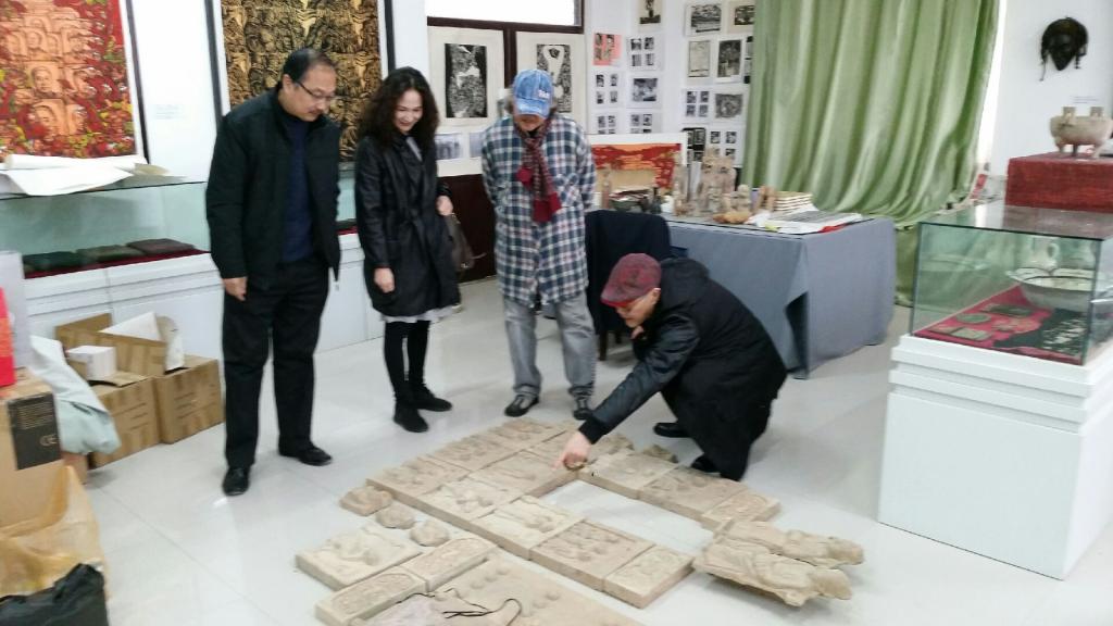 本站訊 3月26日,北京服裝學院教授、國際商業美術師協會專家張森教授、北京服裝學院學報編輯王文雅等一行人,到開封大學大觀博物館、宋文化工藝品技能大師工作室及魏躍進教授工作室參觀考察。 開封大學藝術設計學院院長魏躍進教授詳細介紹了大觀博物館和館藏文物,張森教授指出,開封大學大觀博物館及宋文化工藝品技能大師工作室收藏有獨具特色的文物展品,以此為基礎利用開封豐厚的文化資源,在大學開展了切實有效的文化創意產品設計和課程開發,予以充分的肯定。并希望在未來能加強開封大學與北京服裝學院之間的文化交流與合作,共促兩校雙方的協同發展。
