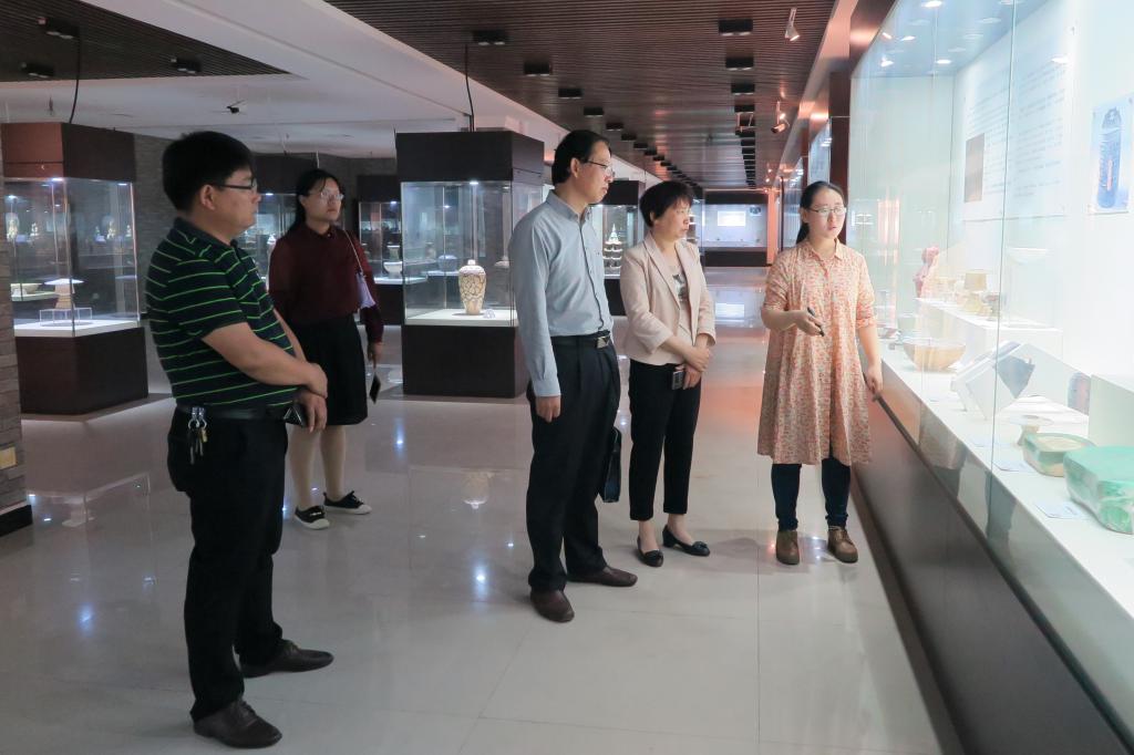 本站訊 5月10日下午,河南科技大學碩士研究生導師,河南高校大學生思想政治教育、大學生課外培養領域的知名專家、學者楊國欣教授到大觀藝術博物館考察交流。我校工會主席成芳、學生工作部部長孫勇陪同參觀。