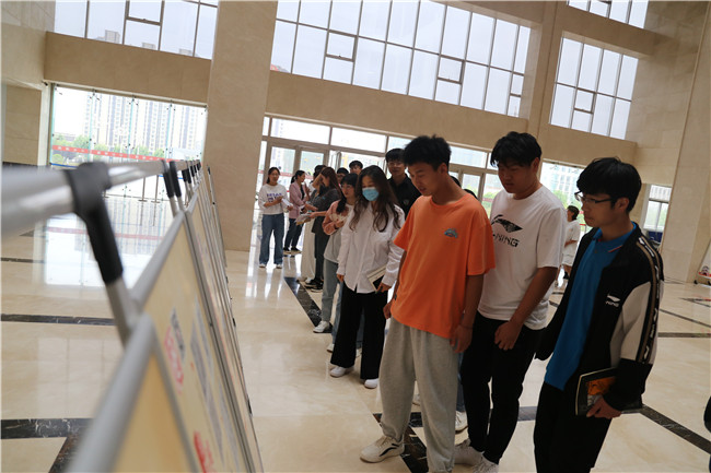 師生參觀學習校圖書館二樓大廳舉辦的開封紅色黨史圖片展