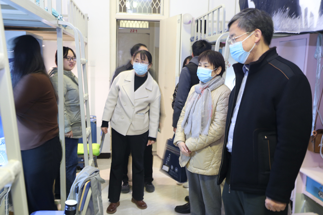 本站訊 為強(qiáng)化學(xué)生文明宿舍建設(shè),加強(qiáng)各項(xiàng)宿舍管理措施的落實(shí),12月1日晚,校長(zhǎng)宋曉煒,校黨委委員、工會(huì)主席成芳帶領(lǐng)黨委宣傳部、學(xué)生工作部、后勤管理服務(wù)中心負(fù)責(zé)人深入宿舍看望學(xué)生,并開(kāi)展文明安全檢查。
