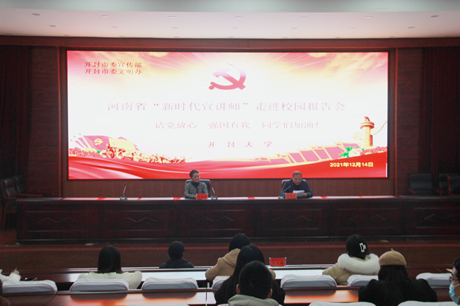 本站訊 為深入學(xué)習(xí)貫徹習(xí)近平新時(shí)代中國特色社會主義思想,通過道德模范的榜樣示范,在師生中更好地培育和踐行社會主義核心價(jià)值觀,12月14日下午,我校在行政樓第一會議廳舉行河南省“新時(shí)代宣講師”走進(jìn)校園——開封大學(xué)專場報(bào)告會。會議由校黨委副書記儲建新主持。