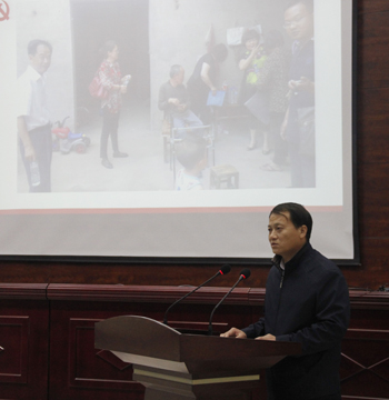 本站訊 11月7日下午,王振立同志先進事跡報告會在我校行政樓一樓會議廳舉行。市委宣傳部副部長、市文明辦主任何利軍,我校領導儲建新、萬是明、范金梅、何世玲、成芳、曾小平和李治出席報告會,我校副科級(教研室主任)以上干部、第5期黨支部書記培訓班學員和各分工會主席參加報告會。