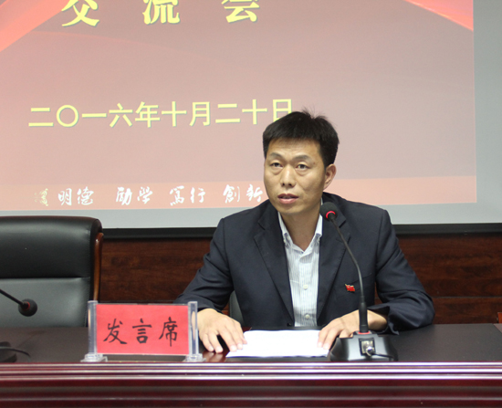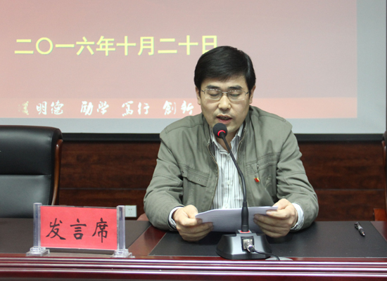 本站訊 10月20日下午,我校在行政樓一樓報告廳舉行學習貫徹開封市第十一次黨代會精神交流會。校領導張新梅、宋志敏、儲建新、萬是明、范金梅、成芳、李治出席了會議,全校科級以上干部參加了會議。會議由黨委副書記儲建新主持。