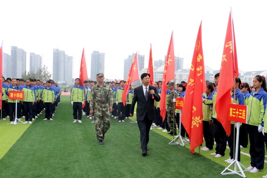 副校長趙輝代表學校表達了對承訓部隊的感謝和敬意。向參加軍訓的各位老師表示誠摯的慰問!向圓滿完成軍訓任務的新生表示熱烈的祝賀!并對5000余名新同學提出殷切希望,希望同學們保持和鞏固軍訓的成果,牢記學校“明德、勵學、篤行、創新”的校訓,牢記“愛祖國、懂禮儀、會勞動、有責任、精技藝”的要求,牢記宋校長在開學典禮上送給大家的兩把金鑰匙——創新和勤奮,用青春和熱血,鋪就一條通往人生理想的成功之路。