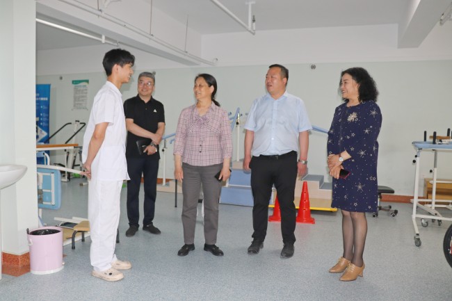 在開封市康復醫院,陳燦一行參觀了醫院的科室布局、功能區的分布以及康復器械。陳燦和在此就業的畢業生進行了親切的交流,詢問了他們的日常工作情況,并鼓勵學生再接再厲,把書本知識與實際相結合,爭取在專業發展方面取得更大的提升。開封市康復醫院執行院長李靈霞介紹了醫院的發展歷程、醫院特色以及今后的發展規劃。院長高素啟希望未來與開封大學在教學科研、專業建設、產教融合、實踐育人等方面建立更深層次的合作關系,不斷吸引更多優秀畢業生來院建功立業。