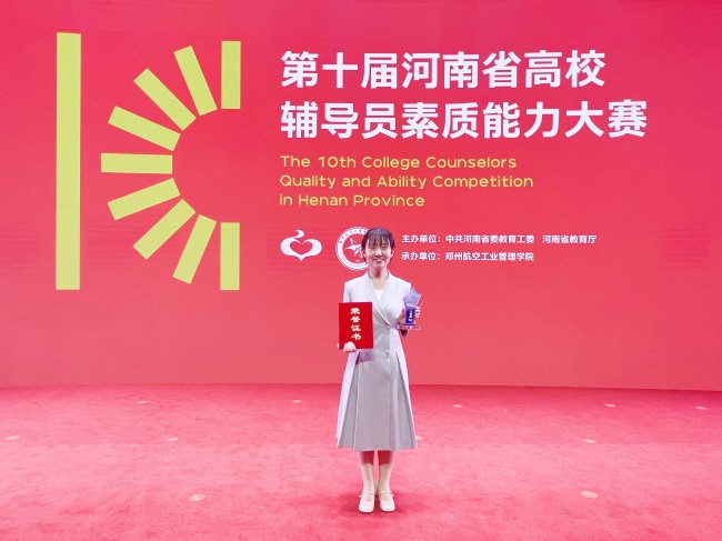 本站訊 4月22日至4月24日,由省委教育工委、省教育廳主辦的河南省第十屆高校輔導(dǎo)員素質(zhì)能力大賽在鄭州航空工業(yè)管理學(xué)院舉辦。我校輔導(dǎo)員陳玫含老師憑借著良好的綜合素質(zhì)和沉穩(wěn)的現(xiàn)場發(fā)揮,在此次比賽中榮獲一等獎。