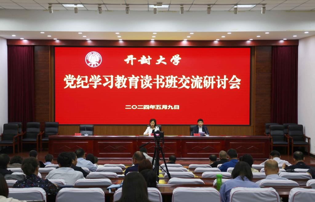 本站訊 5月9日下午,開封大學黨紀學習教育讀書班交流研討會在行政樓第一會議廳舉行。校黨委書記譚貞出席會議并講話,校長王德如主持會議。校領導班子成員、全體中層正職黨員干部、直屬支部書記參會。