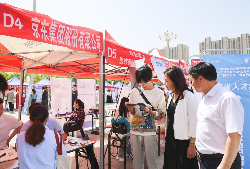 本次雙選會(huì)由開(kāi)封大學(xué)、開(kāi)封市人社局、開(kāi)封市教體局共同主辦,共有357家用人單位參加,提供優(yōu)質(zhì)就業(yè)崗位27000余個(gè),涉及教育、通信、制造、軟件、傳媒等多個(gè)行業(yè)領(lǐng)域。活動(dòng)采取直播帶崗“線上+線下”同步模式進(jìn)行,開(kāi)封大學(xué)抖音直播間累計(jì)觀看人數(shù)1400余人。同時(shí),我校邀請(qǐng)京東集團(tuán)股份有限公司、河南駝人醫(yī)療器械集團(tuán)有限公司、河南諾盾科技有限公司等知名企業(yè)設(shè)立重點(diǎn)幫扶招聘專區(qū),為就業(yè)困難畢業(yè)生提供就業(yè)崗位。