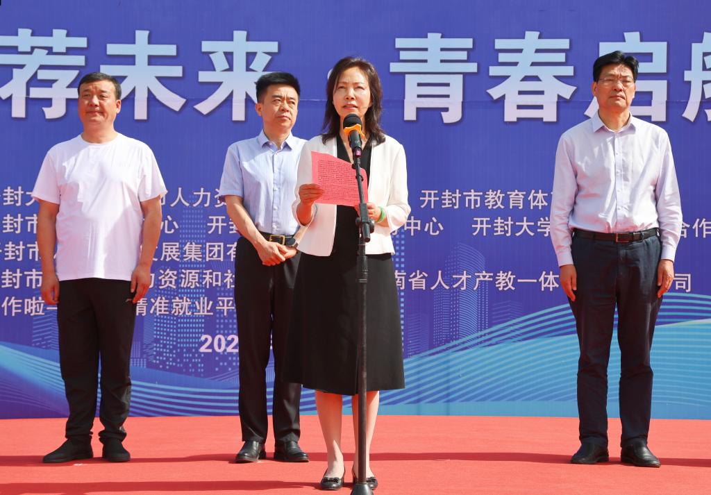 開(kāi)封市副市長(zhǎng)劉震,開(kāi)封大學(xué)黨委書記譚貞、校長(zhǎng)王德如,開(kāi)封市人民政府副秘書長(zhǎng)陳學(xué)輝,開(kāi)封市人力資源和社會(huì)保障局局長(zhǎng)薛兆武,開(kāi)封市教育體育局一級(jí)調(diào)研員耿振勇,寧波市鄞州區(qū)人才市場(chǎng)主任宋磊杰以及學(xué)校領(lǐng)導(dǎo)班子成員出席啟動(dòng)儀式。啟動(dòng)儀式由王德如主持。
