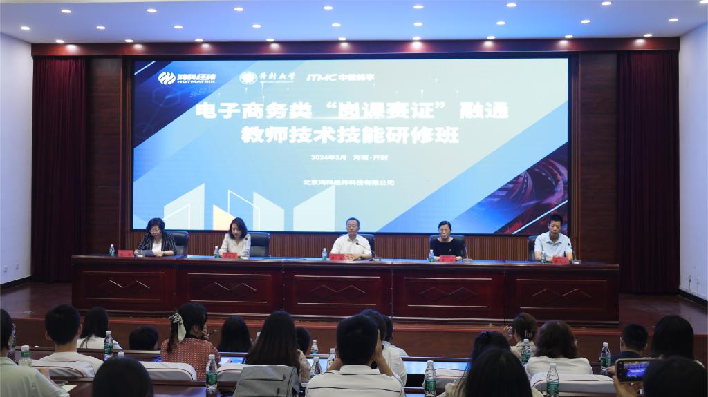 本站訊 5月17日-19日,電子商務類“崗課賽證”融通教師技術技能研修班在我校成功舉辦。本次研修班由北京鴻科經緯科技有限公司主辦,開封大學、中教暢享科技股份有限公司、濰坊高新區中教暢享職業培訓學校有限公司共同協辦。共有來22所職業院校的50余名教師參與本次培訓。校黨委委員、副校長李治,中山職業技術學院數字經濟與電子商務發展研究所所長肖紅,黃河水利職業技術學院網絡營銷教研室主任張之峰,中教暢享科技股份有限公司副總經理邵振亞出席本次開班儀式。開班儀式由旅游學院黨總支書記尤影主持。