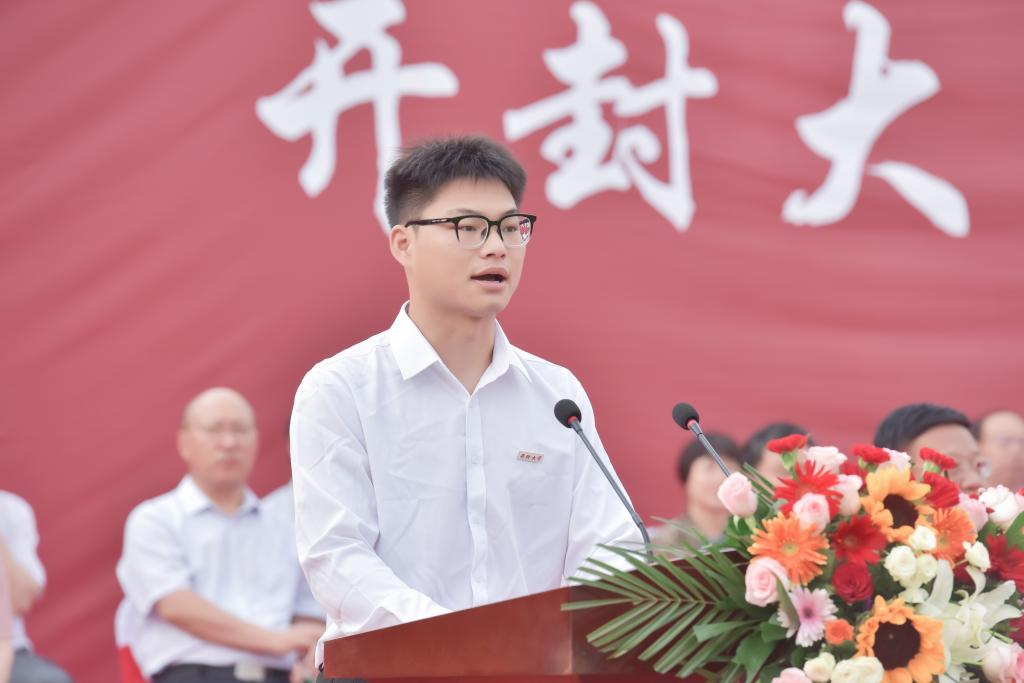 畢業典禮上,信息工程學院2021級計算機應用技術專業白林斌、藝術設計學院院長張富云分別作為學生代表和教師代表進行發言。