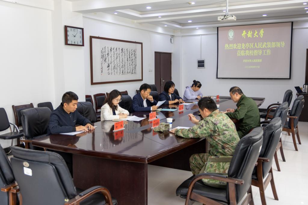 為深化軍地協(xié)作,推動(dòng)學(xué)校國防教育工作高質(zhì)量發(fā)展,4月16日,龍亭區(qū)人民武裝部上校部長張艦、參謀張?jiān)揭恍械轿倚i_展調(diào)研。校黨委副書記張合參加座談會(huì)并講話,座談會(huì)由校武裝部部長付喆主持。