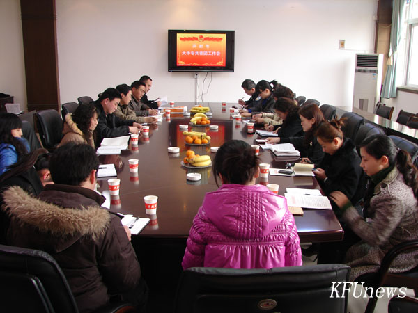 本站訊 3月11日下午,開封市大中專共青團工作會在我校新行政樓二樓會議室召開。共青團開封市市委副書記陶毓敏、開封大學團委書記樊玉霞及我市各大中專兄弟院校共青團工作負責人參加了此次會議。會議由團市委學校部部長孫楠主持。