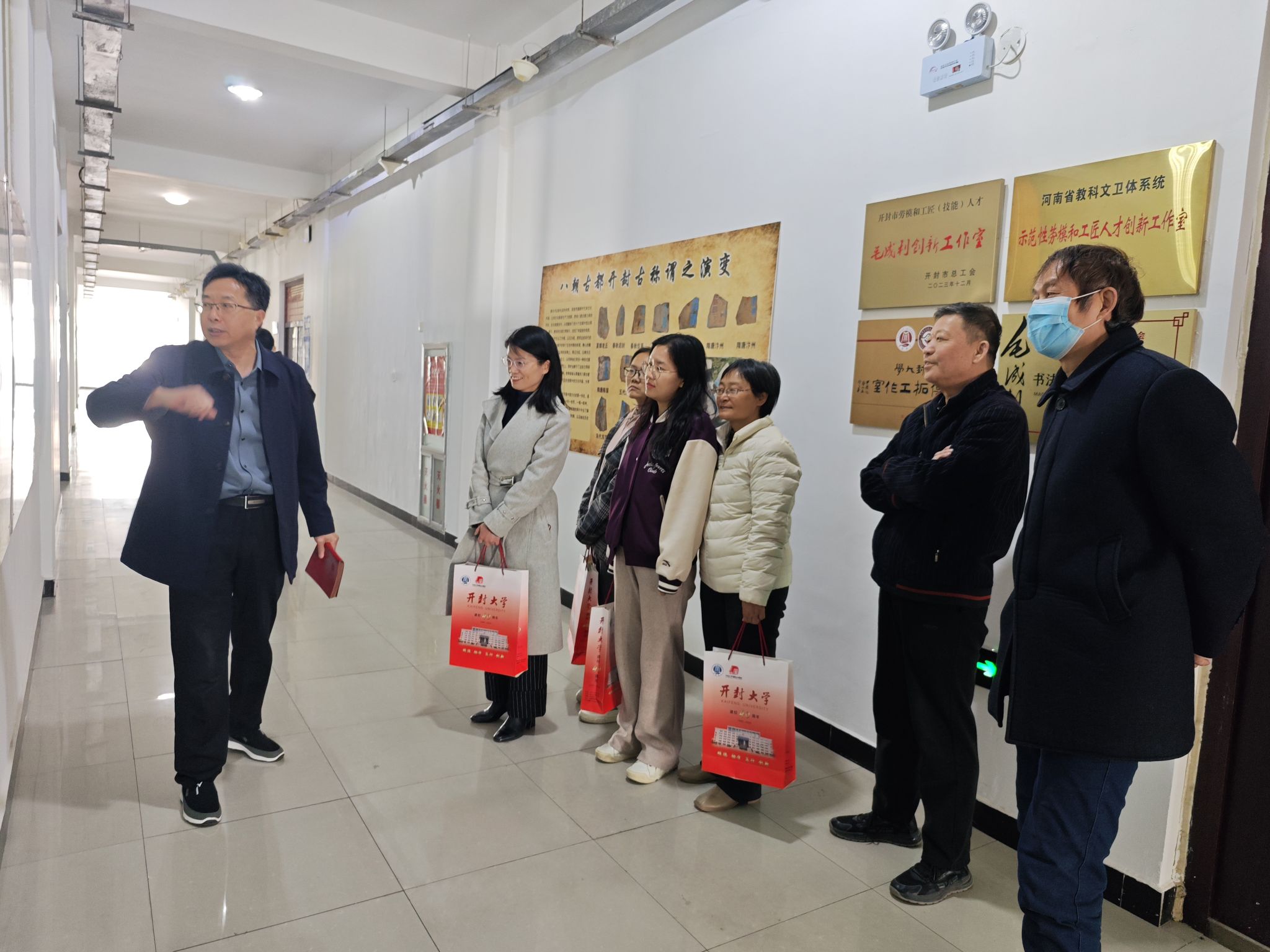 參觀代表與毛成利老師打卡開封大學行政樓大廳