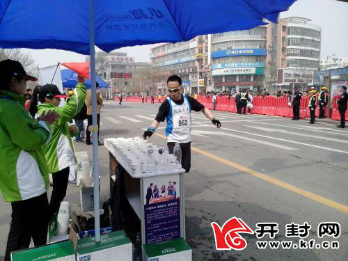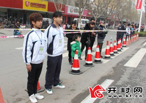 早晨6時(shí),開封大學(xué)學(xué)生志愿者身著校服或志愿服,以飽滿的熱情和積極的態(tài)度奔赴到鄭開大道第十二個(gè)街口至宋都御街段所設(shè)的十五個(gè)重點(diǎn)路口。顧不上吃早飯的志愿者按照各自服務(wù)崗位的要求,認(rèn)真負(fù)責(zé)的準(zhǔn)備自己的工作。他們有的幫助交警維持交通,有的引導(dǎo)往來的游客,有的給運(yùn)動(dòng)員遞送飲用水等,為鄭開馬拉松賽保駕護(hù)航。