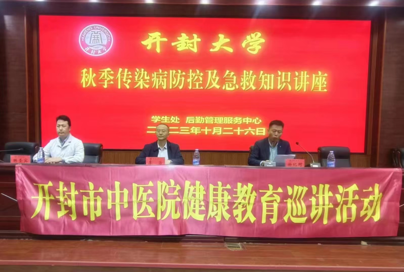 本站訊 為做好秋季傳染病防控工作,普及校園常見傳染病預防和急救知識,提高師生自我防護能力,10月26日下午,我校邀請開封市中醫院韓圣賓、王亞麗兩位醫務專家在行政樓第一會議廳開展“后勤課堂——秋季傳染病防控及急救知識”講座。副校長李治出席活動,各院部200余名師生參加了活動。活動由后勤管理服務中心主任徐紀珂主持。