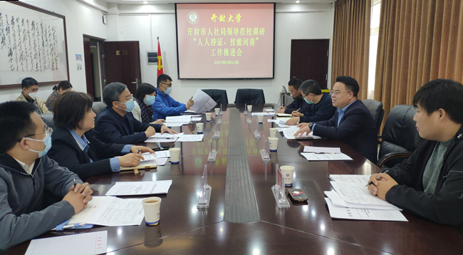 本站訊 5月12日上午,開封市人力資源與社會保障局副局長江靜亞、開封市職業技能鑒定指導中心主任李明、黃河水利職業技術學院教務處處長薛建榮等調研組專家蒞臨我校,調研我校推進“人人持證、技能河南”的工作情況。校長宋曉煒及教務處、繼續教育學院負責人及相關工作人員參加會議。