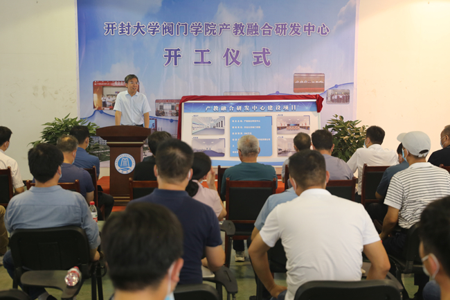 6月18日上午,開封大學閥門學院產教融合研發中心開工儀式在我校6號樓成功舉辦。開封市鼓樓區委常委、統戰部長鄭曉麗,副區長宋朝忠,統戰部副部長、工商聯黨組書記鄧煒,工商聯副主席曹振,我校校長宋曉煒、副校長李治以及相關部門負責人,北京至善智行教育科技有限公司總經理、閥門學院副院長呂玉湖,開高工業技術(集團)有限公司執行董事朱俊峰等企業代表,開封技師學院二級教授武開軍出席開工儀式。我校機械與汽車工程學院和閥門學院在汴教師參加了開工儀式。儀式由機械與汽車工程學院院長、閥門學院執行院長朱躍峰主持。
