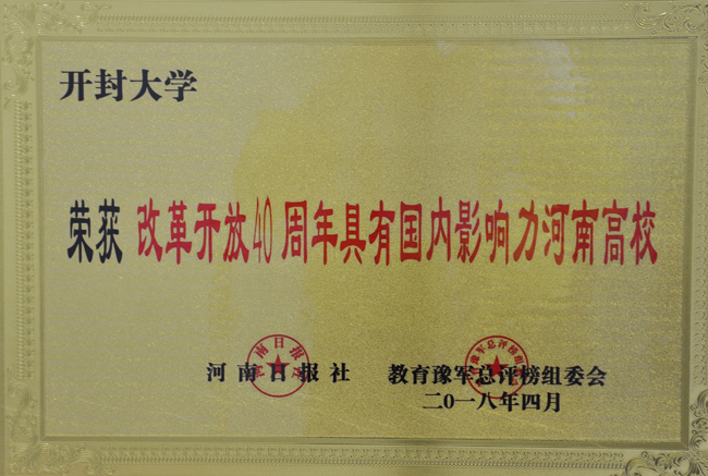 我校榮獲“改革開放40周年具有國(guó)內(nèi)影響力河南高校”榮譽(yù)稱號(hào)