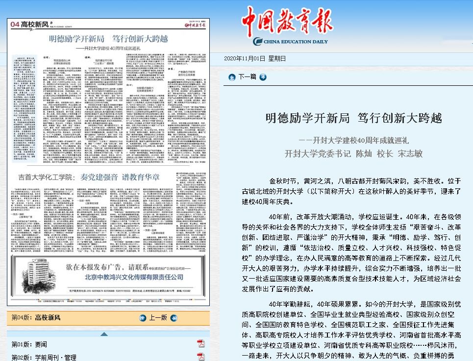 中國教育報:明德勵學開新局 篤行創新大跨越 ——開封大學建校40 周年成就巡禮