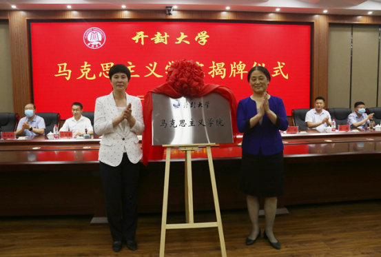 開封市委常委、市委宣傳部部長邵華和校黨委書記陳燦共同為馬克思主義學院揭牌