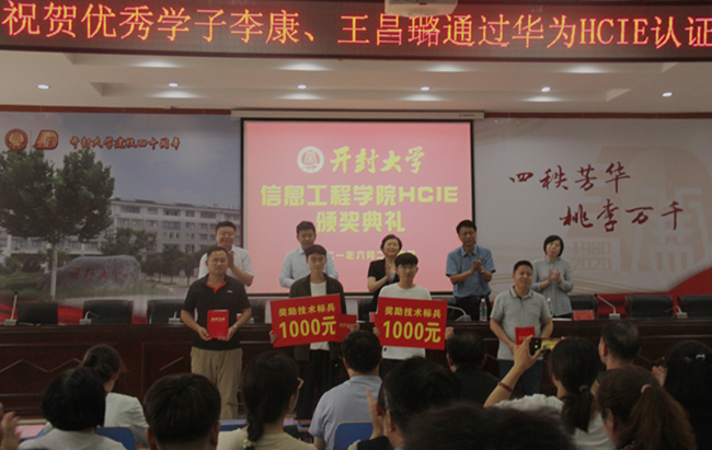 華為政企業務部開封總經理楊昊,我校黨委委員、副校長趙輝出席HCIE頒獎大會現場
