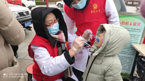義診臺(tái)前,志愿者們頂著寒風(fēng),熱情耐心的為每一個(gè)前來(lái)咨詢的市民進(jìn)行測(cè)量血壓、檢查口腔疾病等義診服務(wù),同時(shí)向市民普及疫情防控、日常保健知識(shí),在常見病多發(fā)病的預(yù)防、常用藥品服用方法以及如何養(yǎng)成健康的生活方式等方面給予指導(dǎo)。