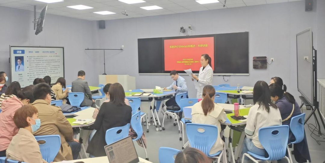 會上,曾教授從“什么是系統評價與Meta分析”娓娓道來,闡明了系統評價與Meta分析的價值所在,以自己的科研成果為基礎,講述了系統評價與Meta分析的步驟與方法。互動之中,曾教授對老師們關心的科研等學術問題做了詳細解答,并鼓勵大家結合自己專業領域深耕“系統評價與Meta分析”這片沃土。