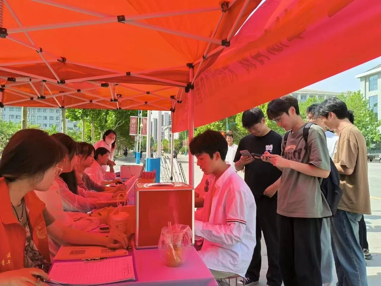 每一袋熱血,都是生命的禮物。為弘揚無償獻血的博愛、奉獻精神,充分展現當代青年的擔當與奉獻,開封市中心血站聯合我校橙腳印紅十字會于5月17日在我校展開了無償獻血活動自覺排隊,在志愿者的指引下有序填寫獻血登記表格,志愿者們認真回答每位同學的問題并時刻關注獻血人員的身體狀況,防止獻血后出現各種意外情況。